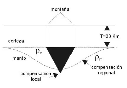 En la compensación local hay que calcular el espesor de la corteza bajo cada rasgo topográfico, es decir, hay que establecer la geometría de raíz.